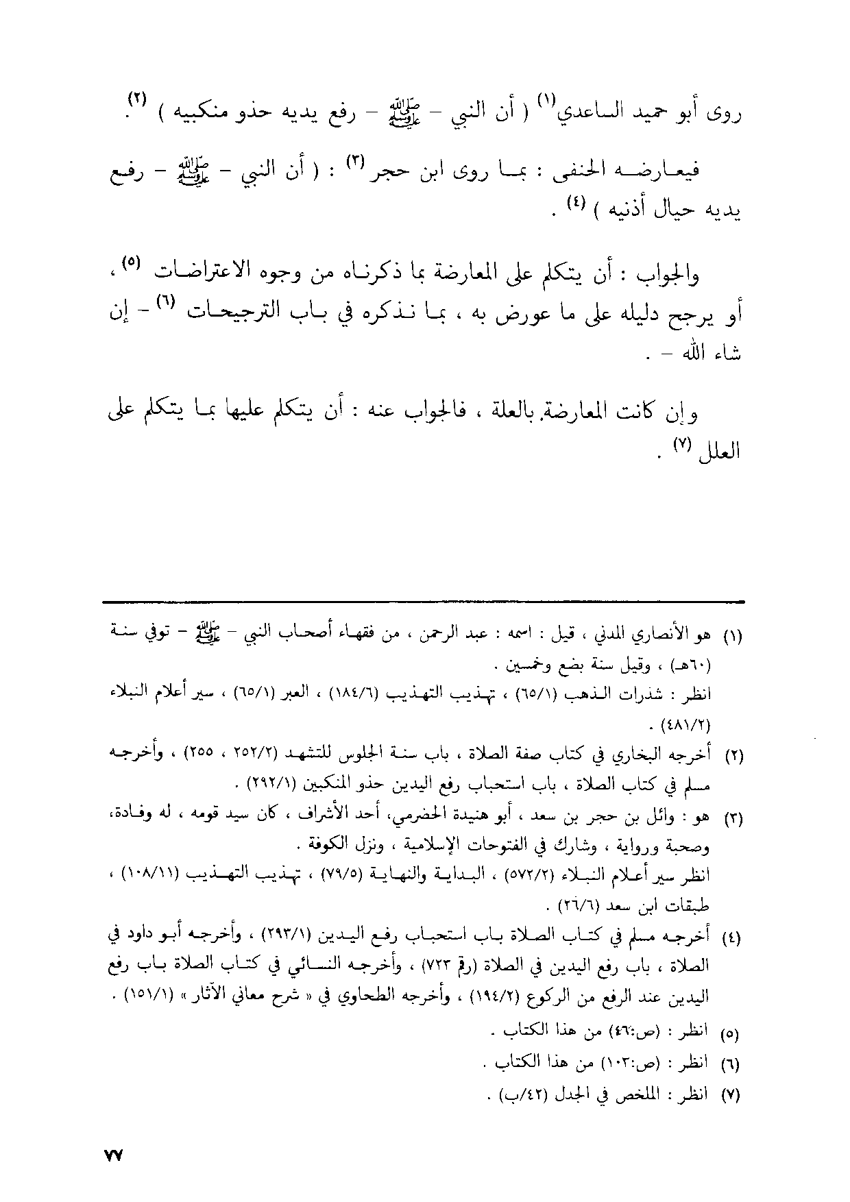 روى ابو حميد السَّاعِدِيّ ان النَّبِي صلى الله عَلَيْهِ وَسلم رفع يَدَيْهِ حَذْو مَنْكِبَيْه // أخرجه البُخَارِيّ مُسلم