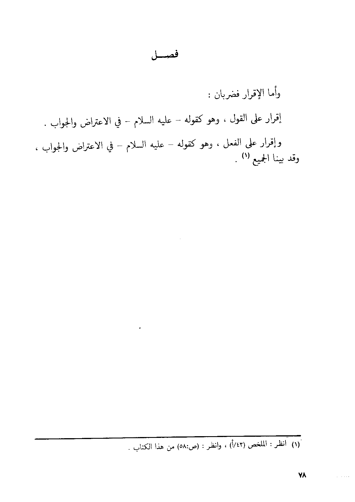 اقرار على القَوْل وَهُوَ كَقَوْلِه عَلَيْهِ السَّلَام فِي الِاعْتِرَاض وَالْجَوَاب