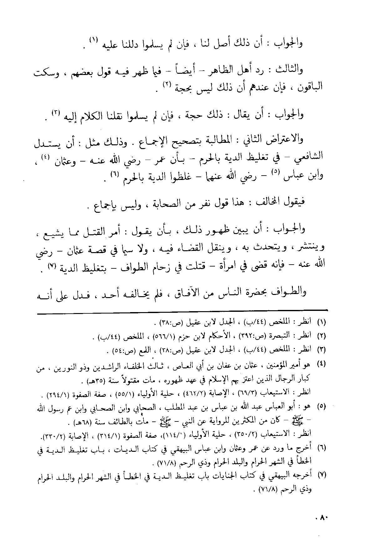 والاعتراض الثَّانِي الْمُطَالبَة بتصحيح الاجماع وَذَلِكَ مثل ان يسْتَدلّ الشَّافِعِي فِي تَغْلِيظ الدِّيَة بِالْحرم بَان عمر رَضِي الله عَنهُ وَعُثْمَان وَابْن عَبَّاس رَضِي الله عَنْهُمَا غلظوا الدِّيَة بِالْحرم