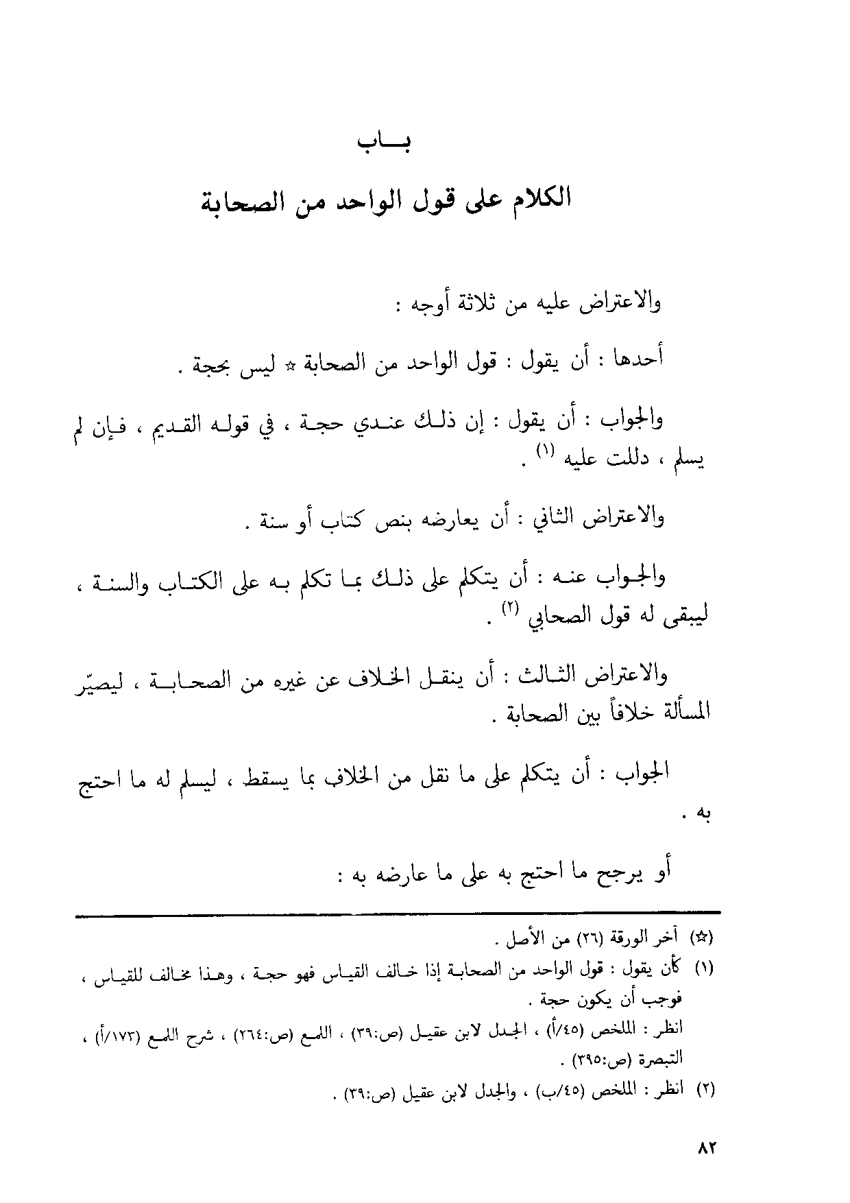 - صَلَّى اللَّهُ عَلَيْهِ وَسَلَّم َ - بَاب الْكَلَام على قَول الْوَاحِد من الصَّحَابَة - صَلَّى اللَّهُ عَلَيْهِ وَسَلَّم َ -