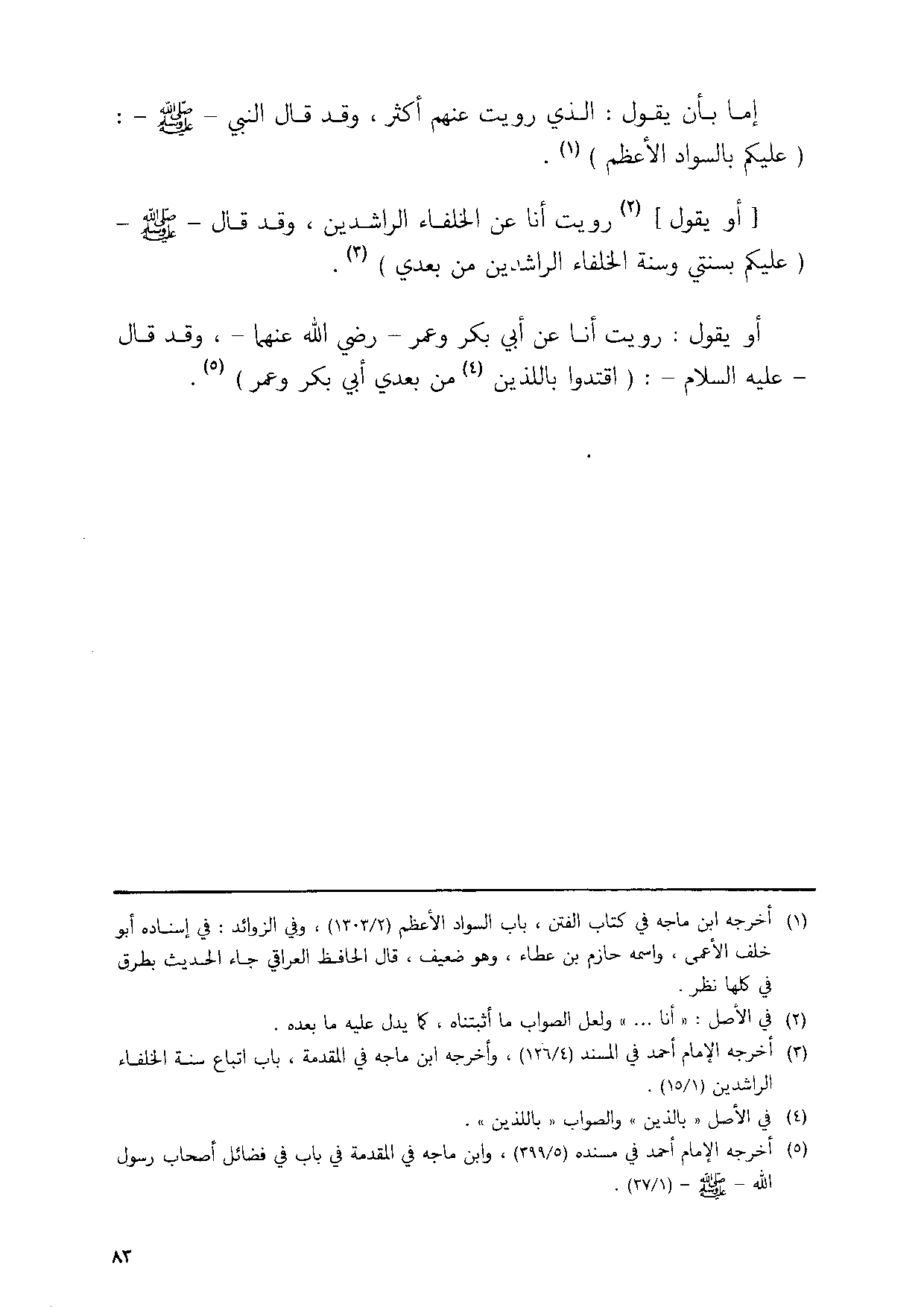 اما بَان يَقُول الَّذِي رويت عَنْهُم اكثر وَقد قَالَ النَّبِي صلى الله عَلَيْهِ وَسلم عَلَيْكُم بِالسَّوَادِ الاعظم // أخرجه ابْن مَاجَه فِي كتاب الْفِتَن