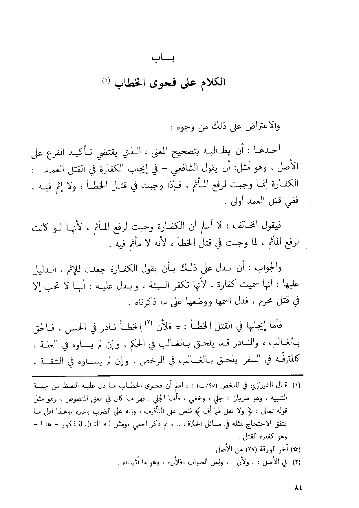 وَالْجَوَاب ان يدل على ذَلِك بَان يَقُول الْكَفَّارَة جعلت للأثم الدَّلِيل عَلَيْهَا انها سميت كَفَّارَة لانها تكفر السَّيئَة وَيدل عَلَيْهِ أَنَّهَا لَا تجب الا فِي قتل محرم فَدلَّ اسْمهَا ووضعها على مَا ذَكرْنَاهُ