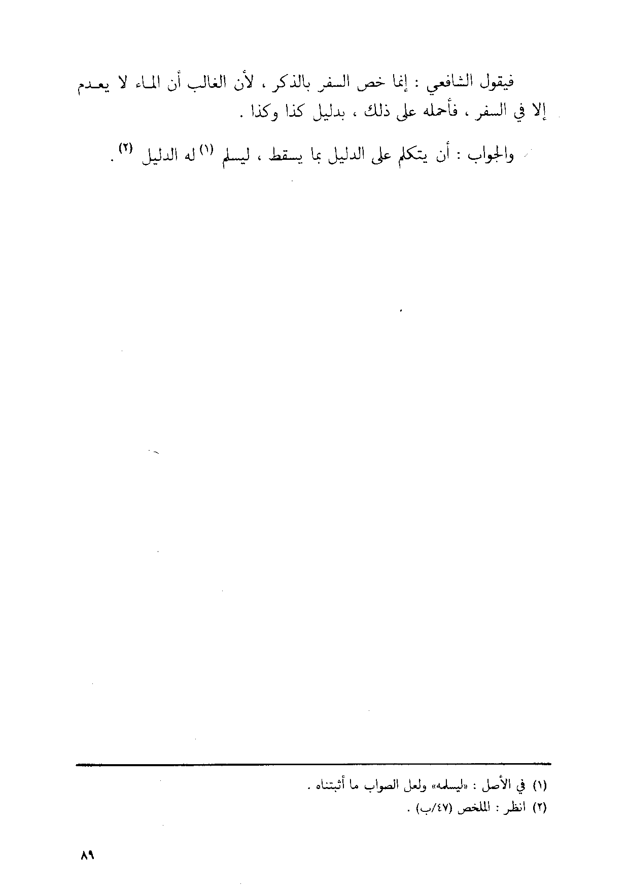 فَيَقُول الشفعي انما خص السّفر بِالذكر لَان الْغَالِب ان المَاء لَا يعْدم الا فِي السّفر فاحمله على ذَلِك بِدَلِيل كَذَا وَكَذَا
