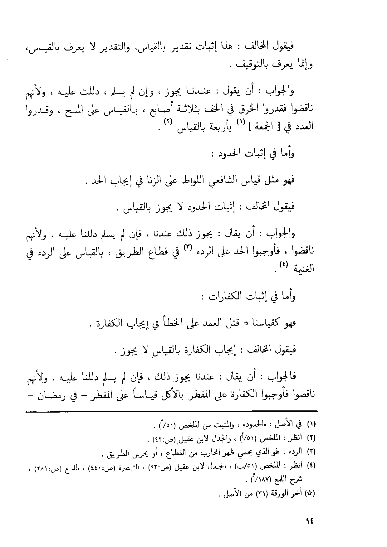 فَيَقُول الْمُخَالف اثبات الْحُدُود لَا يجوز بِالْقِيَاسِ