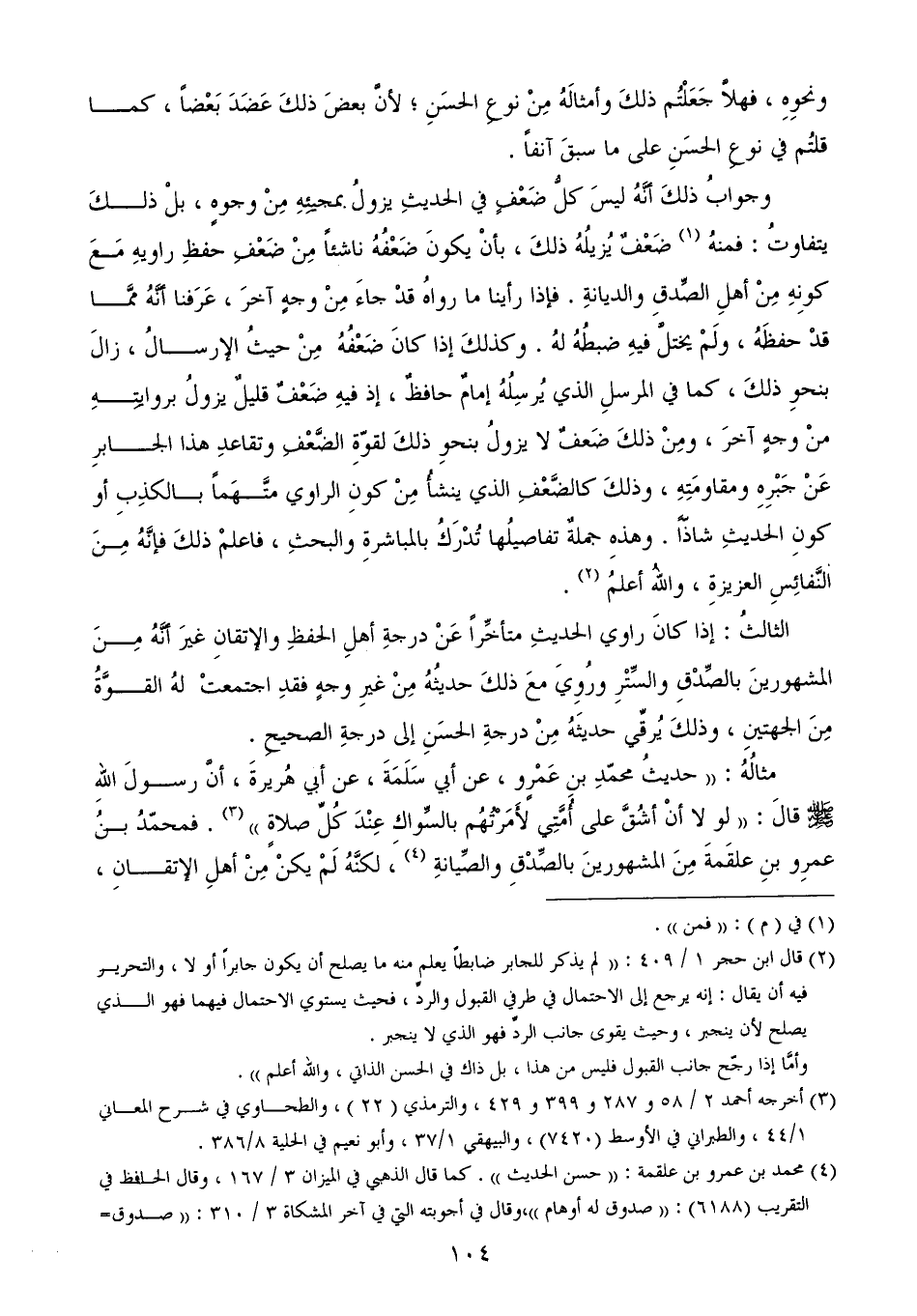 (¬4) محمد بن عمرو بن علقمة: ((حسن الحديث)). كما قال الذهبي في الميزان 3/ 167، وقال الحافظ في التقريب (6188): ((صدوق له أوهام))، وقال في أجوبته التي في آخر المشكاة 3/ 310: ((صدوق= =في حفظه شيء، وحديثه في مرتبة الحسن)). وقال في هدي الساري 441: ((صدوق تكلم فيه بعضهم من قبل حفظه)).