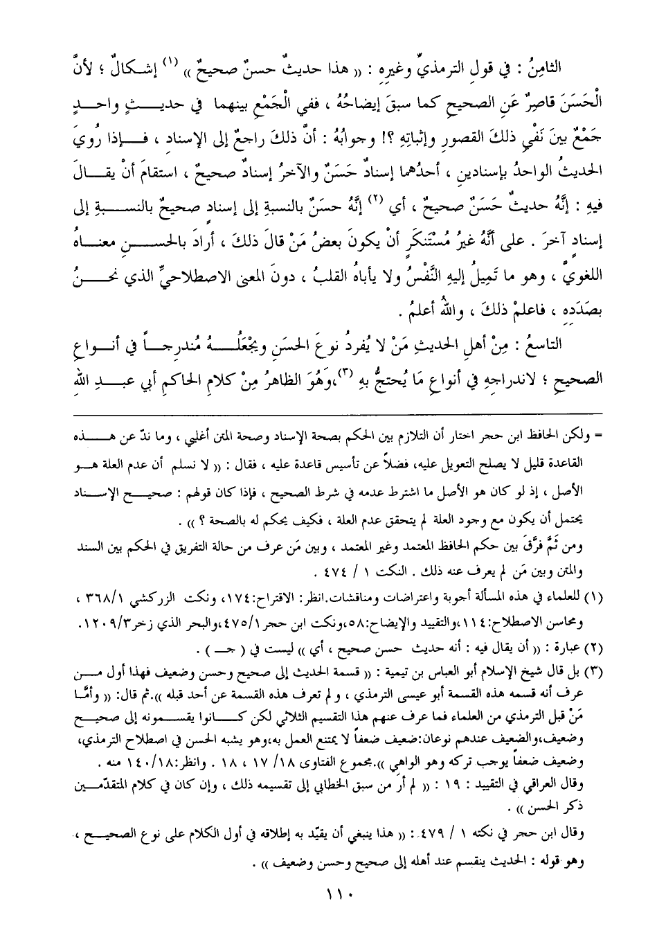 وقال ابن حجر في نكته 1/ 479: ((هذا ينبغي أن يقيّد به إطلاقه في أول الكلام على نوع الصحيح، وهو قوله: الحديث ينقسم عند أهله إلى صحيح وحسن وضعيف)).