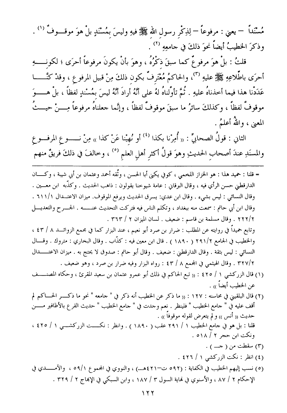 (¬1) قال الزركشي 1/ 425: ((تبع الحاكم في ذلك أبو عمرو عثمان بن سعيد المقرئ، وحكاه المصنف عن الخطيب أيضاً)).