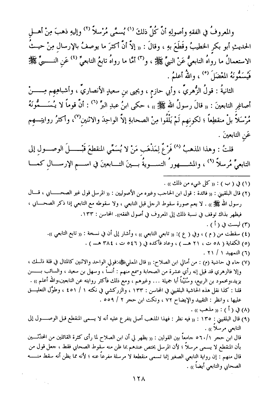 (¬9) قال البلقيني: 135: ((فيه نظر: فهذا المذهب أصل يتفرع عليه أنه لا يسمى المنقطع قبل الوصول إلى التابعي مرسلاً)).