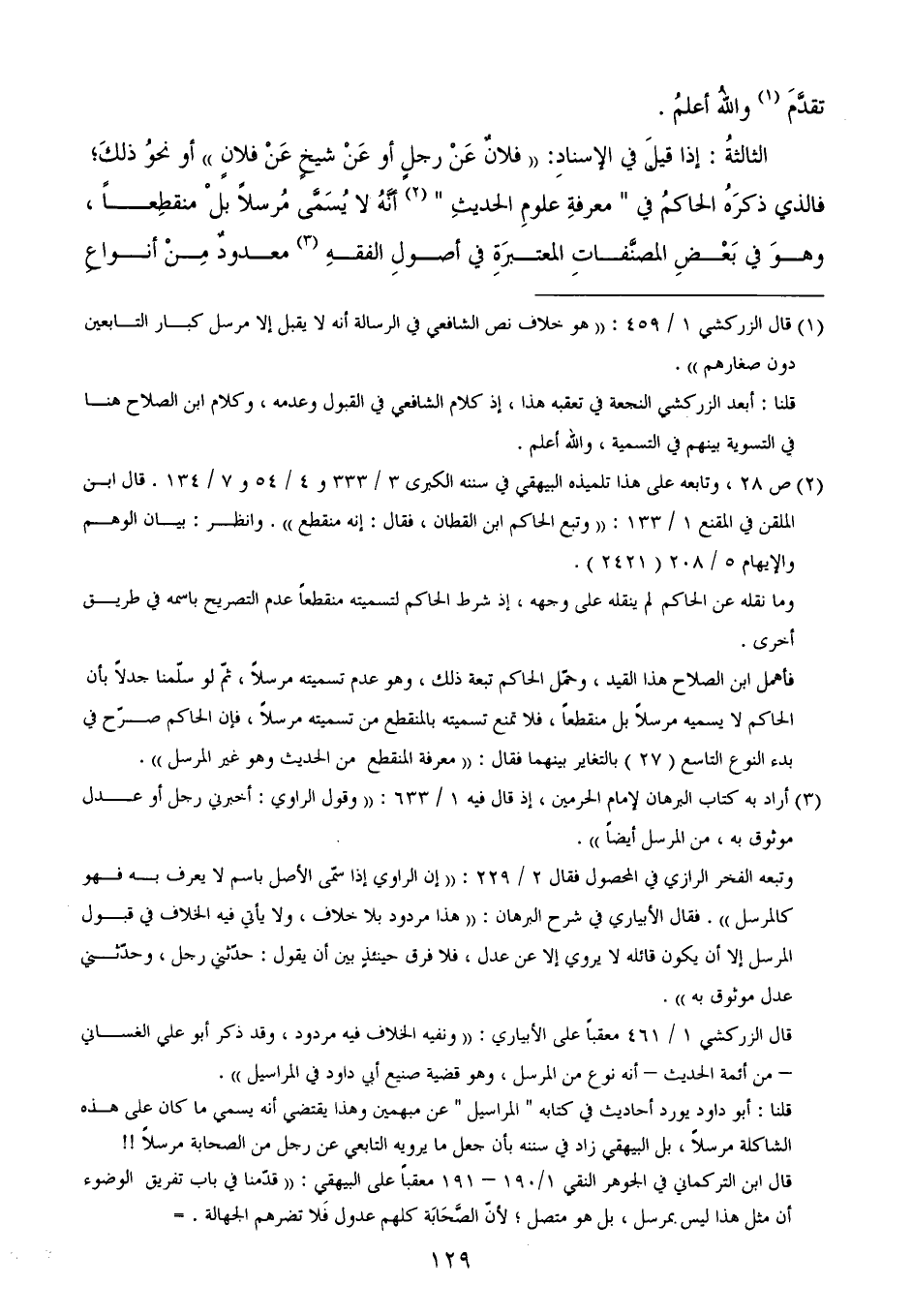(¬3) أراد به كتاب البرهان لإمام الحرمين، إذ قال فيه 1/ 633: ((وقول الراوي: أخبرني رجل أو عدل موثوق به، من المرسل أيضاً)).