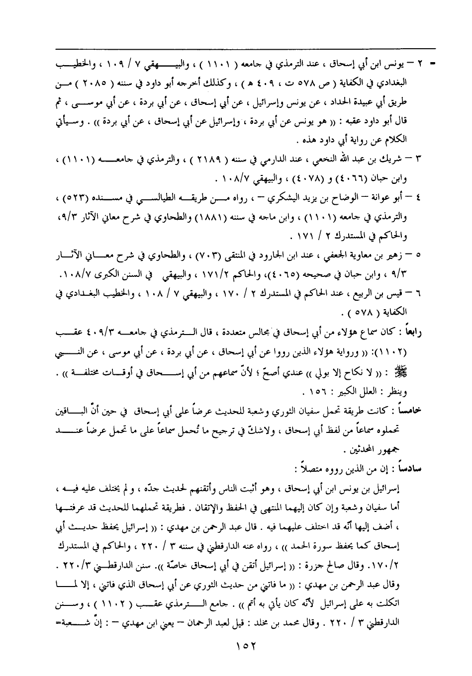 رابعاً: كان سماع هؤلاء من أبي إسحاق في مجالس متعددة، قال الترمذي في جامعه 3/ 409 عقب (1102): ((ورواية هؤلاء الذين رووا عن أبي إسحاق، عن أبي بردة، عن أبي موسى، عن النبي - صلى الله عليه وسلم -: ((لا نكاح إلا بولي)) عندي أصحّ؛ لأنّ سماعهم من أبي إسحاق في أوقات مختلفة)).