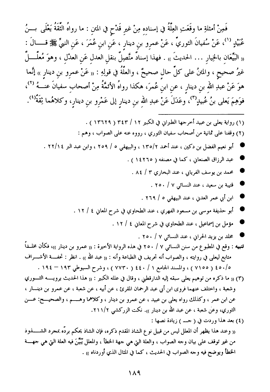 (¬3) ((ما ذكره من توهيم يعلى سبقه إليه الدارقطني، وقال في علله الكبير: ((هذا الحديث يرويه الثوري وشعبة، واختلف عنهما فروى ابن أبي عبد الرحمان المقرئ، عن أبيه، عن شعبة، عن عمرو بن دينار، عن ابن عمر، وكذلك رواه يعلى بن عبيد، عن عمرو بن دينار، وكلاهما وهم، والصحيح: عن الثوري، وعن شعبة، عن عبد الله بن دينار)). نكت الزركشي 2/ 211.