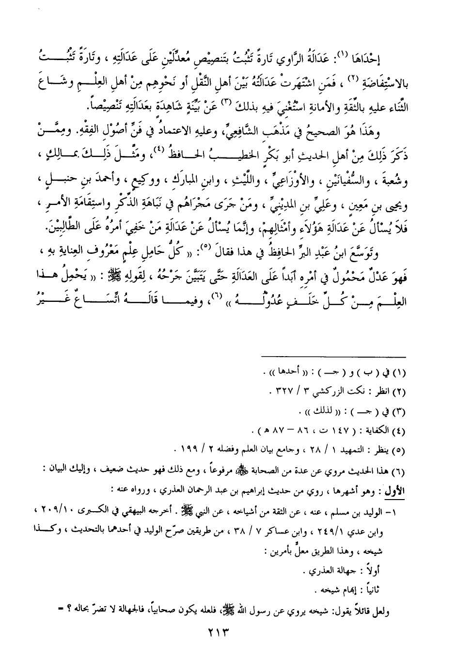 وشُعبةَ، والسُّفْيانَيْنِ، والأوْزَاعِيِّ، واللَّيْثِ، وابنِ المبارَكِ، ووكِيعٍ، وأحمدَ بنِ حنبلٍ، ويحيى بنِ مَعِينٍ، وعَلِيِّ بنِ المدِيْنِيِّ، ومَنْ جَرَى مَجْرَاهُم في نَبَاهَةِ الذِّكْرِ واستِقَامَةِ الأمرِ، فَلاَ يُسْألُ عَنْ عَدَالَةِ هَؤُلاَءِ وأمْثَالِهِمْ، وإنَّمَا يُسْألُ عَنْ عَدَالَةِ مَنْ خَفِيَ أمرُهُ عَلَى الطَّالِبِيْنَ.