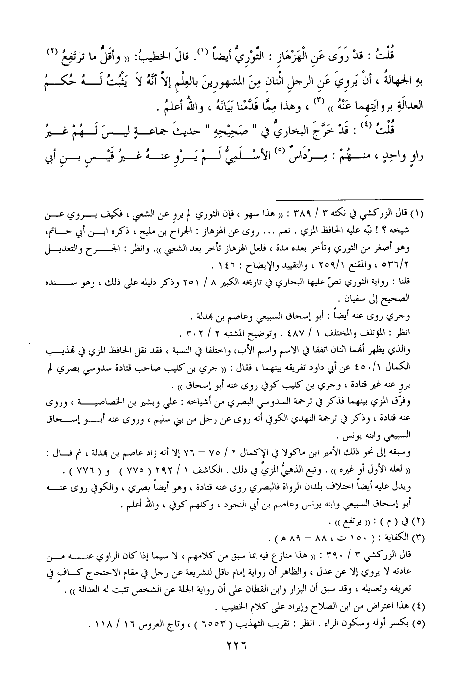(¬1) قال الزركشي في نكته 3/ 389: ((هذا سهو، فإن الثوري لم يروِ عن الشعبي، فكيف يروي عن شيخه؟! نبّه عليه الحافظ المزي. نعم ... روى عن الهزهاز: الجراح بن مليح، ذكره ابن أبي حاتم، وهو أصغر من الثوري وتأخر بعده مدة، فلعل الهزهاز تأخر بعد الشعبي)). وانظر: الجرح والتعديل 2/ 536، والمقنع 1/ 259، والتقييد والإيضاح: 146.