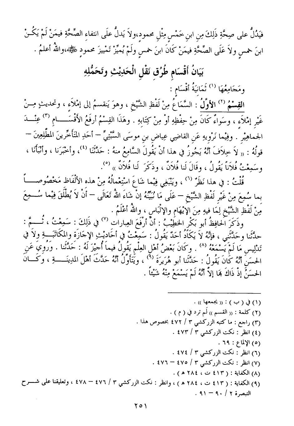 (¬9) الكفاية: (413 ت، 284 هـ)، وانظر: نكت الزركشي 3/ 476 - 478، وتعليقنا على شرح التبصرة 2/ 90 - 91.