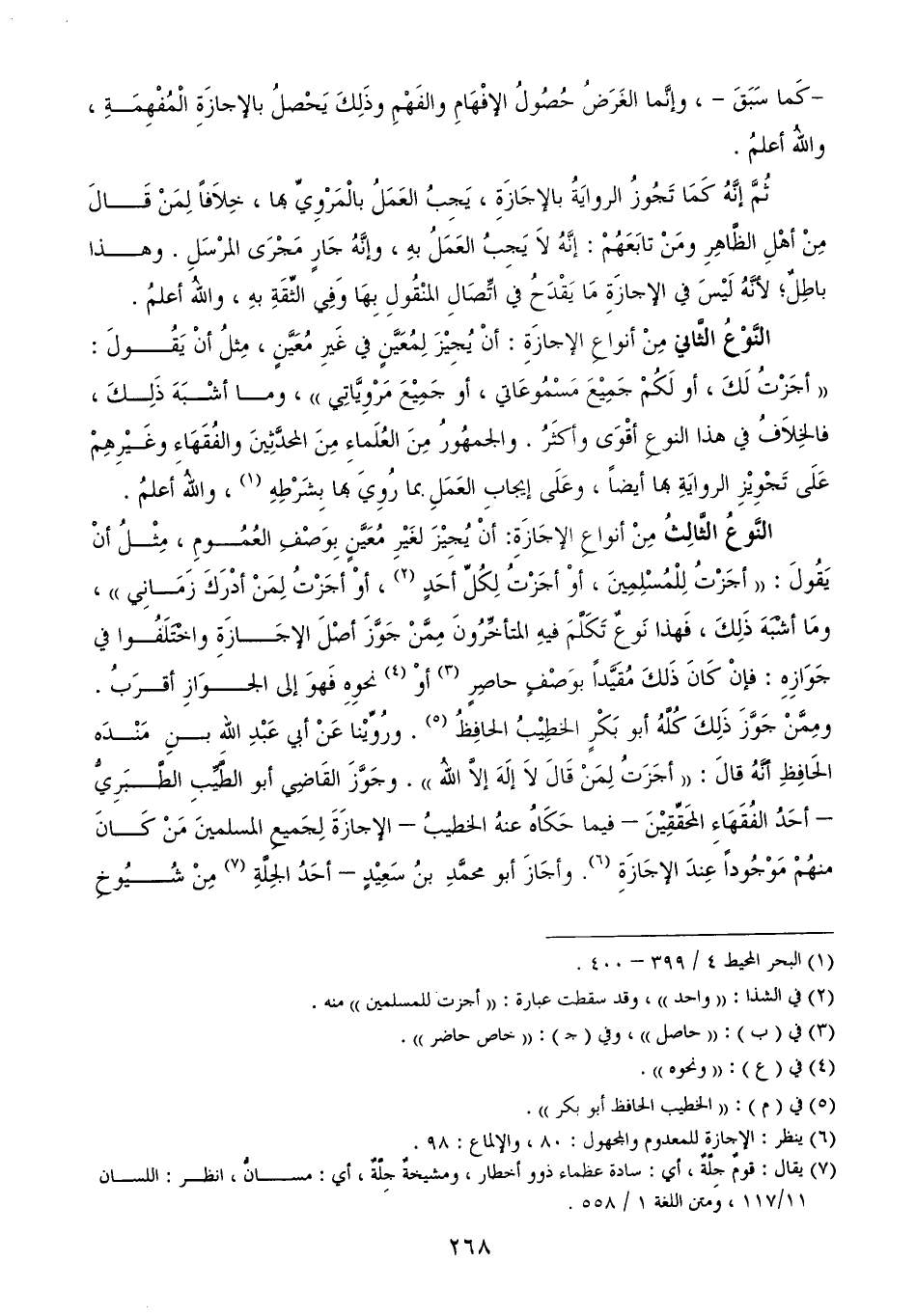 (¬6) ينظر: الإجازة للمعدوم والمجهول: 80، والإلماع: 98.