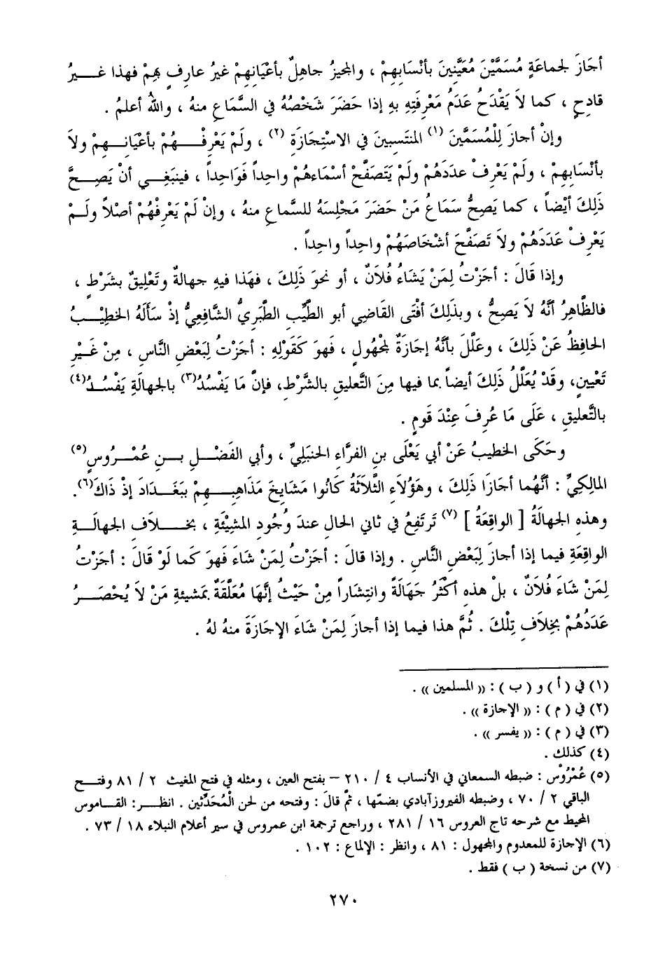 (¬6) الإجازة للمعدوم والمجهول: 81، وانظر: الإلماع: 102.