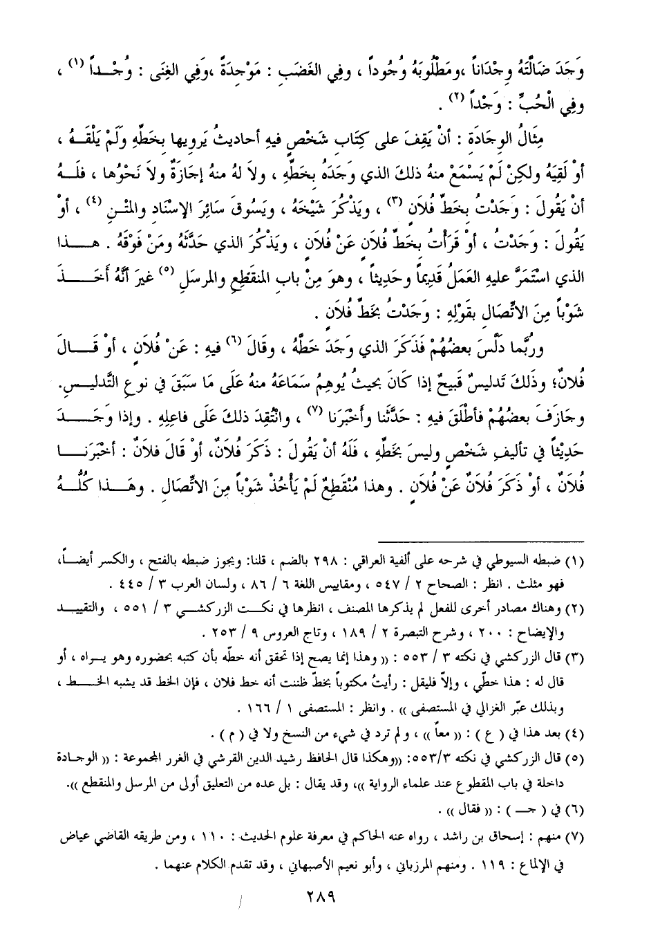 (¬5) قال الزركشي في نكته 3/ 553: ((وهكذا قال الحافظ رشيد الدين القرشي في الغرر المجموعة: ((الوجادة داخلة في باب المقطوع عند علماء الرواية))، وقد يقال: بل عده من التعليق أولى من المرسل والمنقطع)).