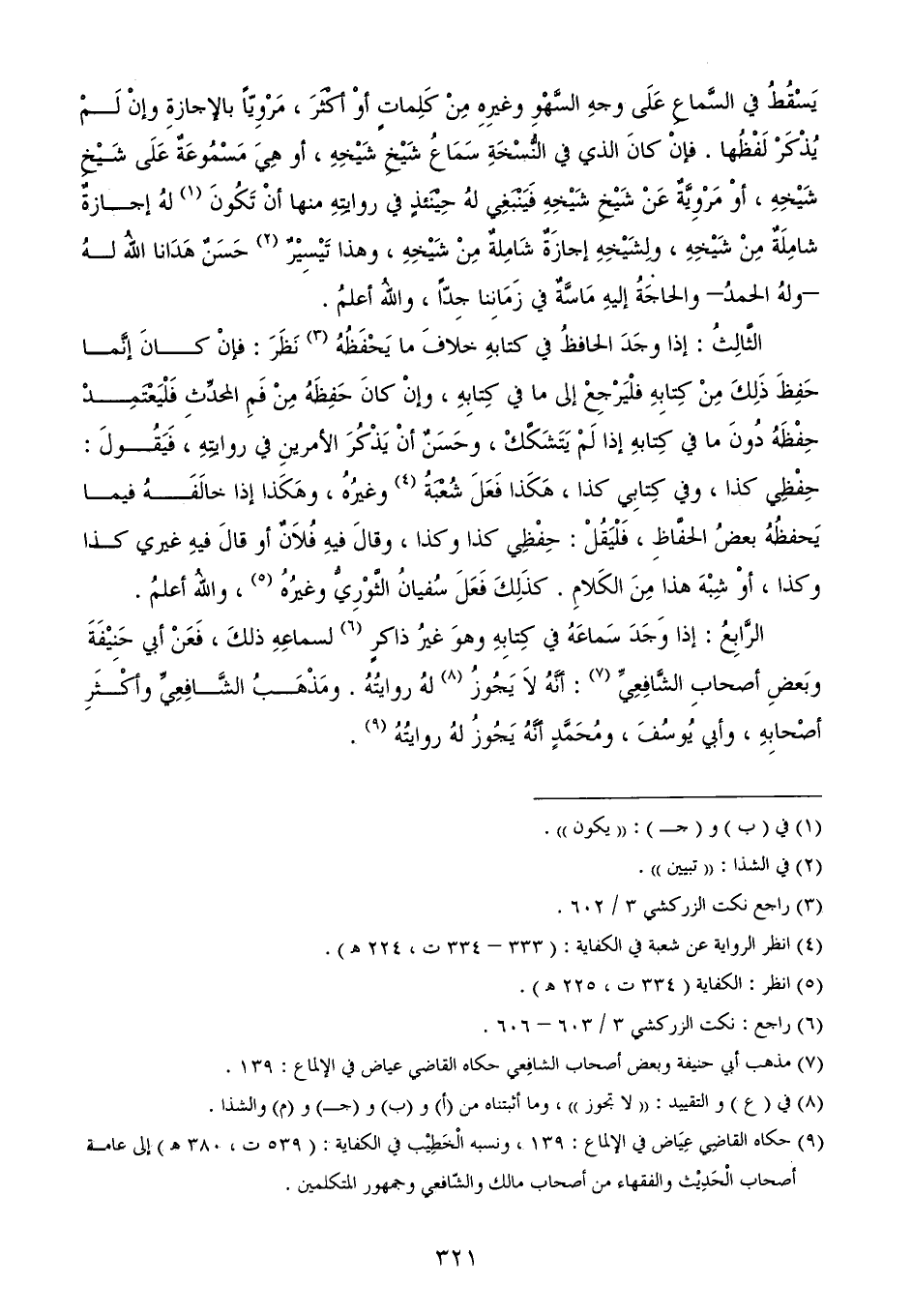 (¬9) حكاه القاضِي عِيَاض في الإلماع: 139، ونسبه الْخَطِيْب في الكفاية: (539 ت، 380 هـ) إلى عامة أصحاب الْحَدِيْث والفقهاء من أصحاب مالك والشّافعي وجمهور المتكلمين.