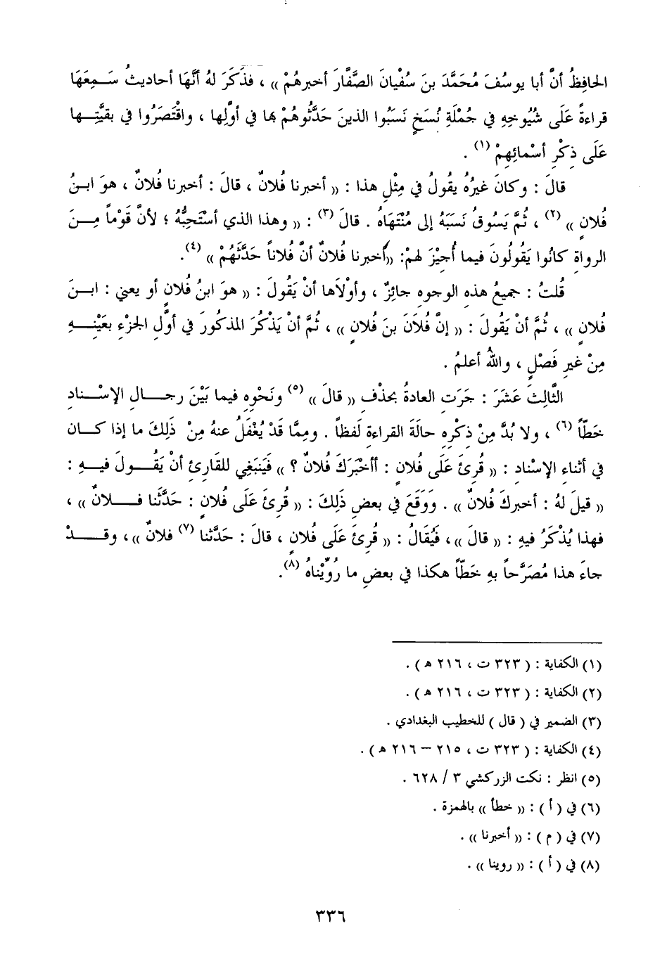 (¬1) الكفاية: (323 ت، 216 هـ).
