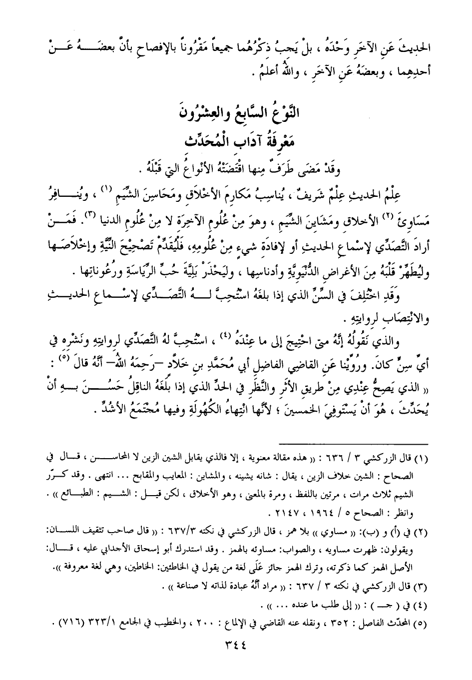 عِلْمُ الحديثِ عِلْمٌ شَريفٌ، يُناسِبُ مَكارِمَ الأخْلاَقِ ومَحَاسِنَ الشِّيَمِ (¬1)، ويُنافِرُ مَسَاوِئَ (¬2) الأخلاقِ ومَشَايِنَ الشِّيَمِ، وهوَ مِنْ عُلُومِ الآخِرَةِ لا مِنْ عُلُومِ الدنيا (¬3). فَمَنْ أرادَ التَّصَدِّي لإسْماعِ الحديثِ أو لإفادَةِ شيءٍ مِنْ عُلُومِهِ، فَلْيُقَدِّمْ تَصْحِيْحَ النِّيَّةِ وإخْلاَصَها وليُطَهِّرْ قَلْبَهُ مِنَ الأغراضِ الدُّنْيَوِيَّةِ وأدناسِها، وليَحْذَرْ بَلِيَّةَ حُبِّ الرِّيَاسَةِ ورُعُوناتِها.