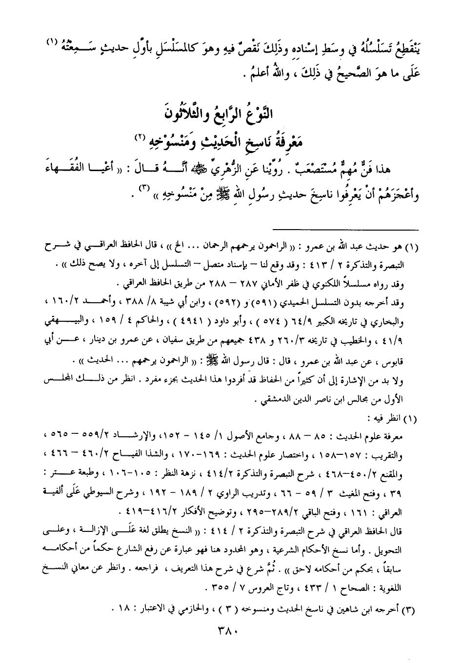 مَعْرِفَةُ نَاسِخِ الْحَدِيْثِ وَمَنْسُوْخِهِ (¬2)