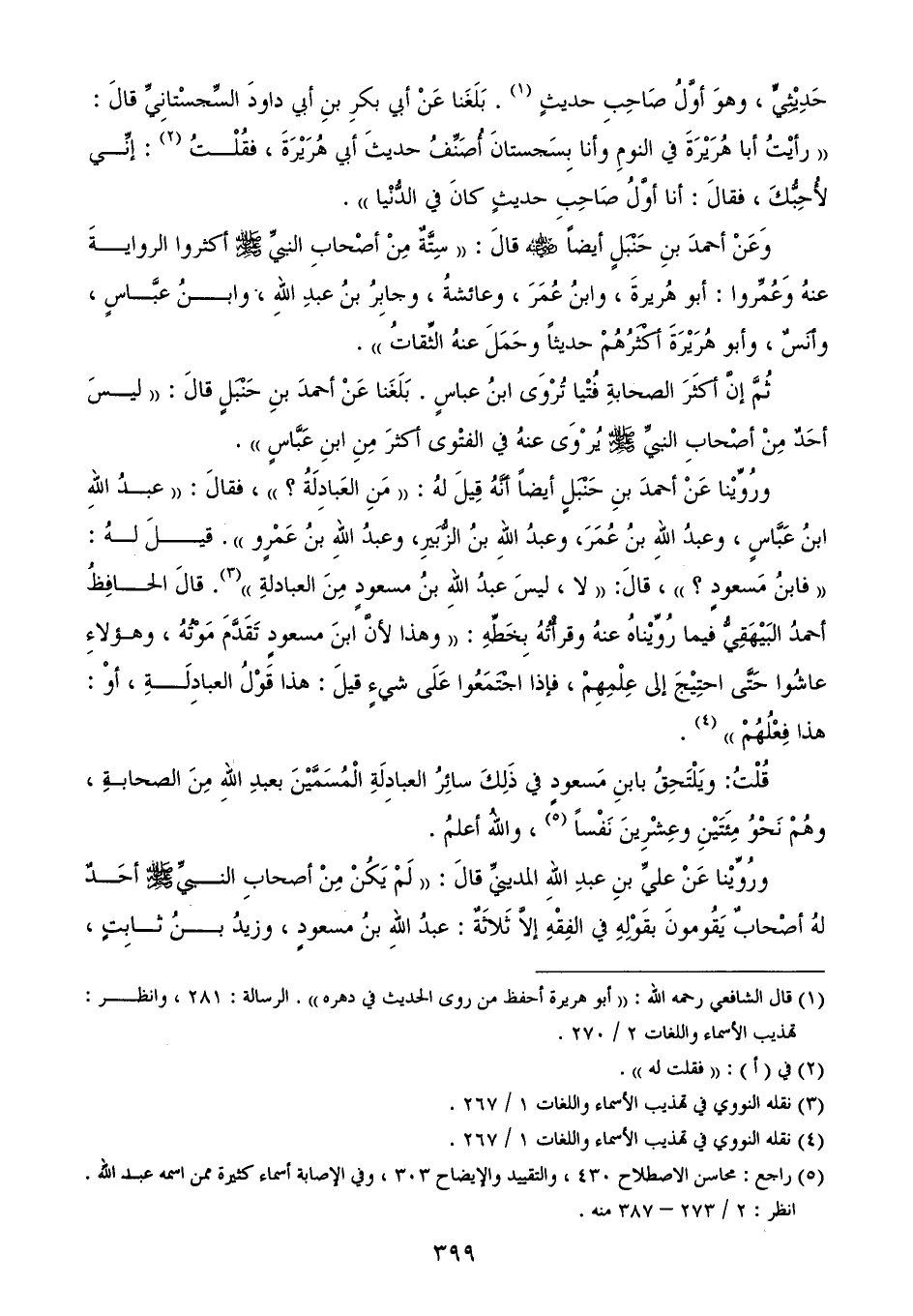 (¬5) راجع: محاسن الاصطلاح 430، والتقييد والإيضاح 303، وفي الإصابة أسماء كثيرة ممن اسمه عبد الله. انظر: 2/ 273 - 387 منه.