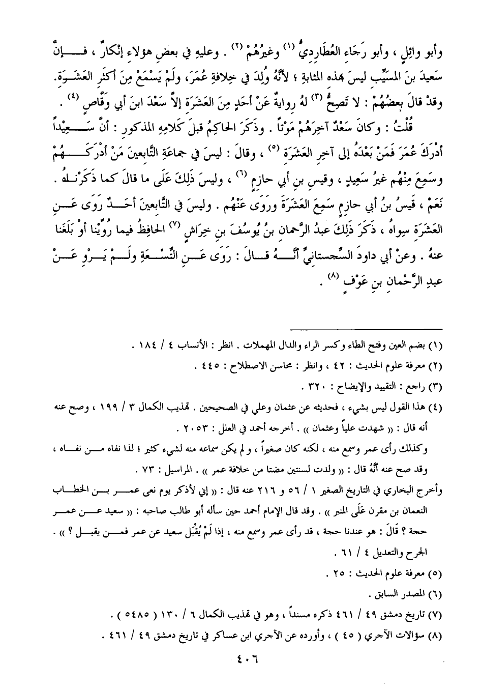 وأبو وائِلٍ، وأبو رَجَاءِ العُطَارِدِيُّ (¬1) وغيرُهُمْ (¬2). وعليهِ في بعضِ هؤلاءِ إنْكارٌ، فإنَّ سَعيدَ بنَ المسَيِّبِ ليسَ بهذهِ المثابةِ؛ لأنَّهُ وُلِدَ في خِلافةِ عُمَرَ، ولَمْ يَسْمَعْ مِنَ أكثَرِ العَشَرَةِ. وقدْ قالَ بعضُهُمْ: لا تَصِحُّ (¬3) لهُ رِوايةٌ عَنْ أحَدٍ مِنَ العَشَرَةِ إلاَّ سَعْدَ ابنَ أبي وَقَّاصٍ (¬4).
