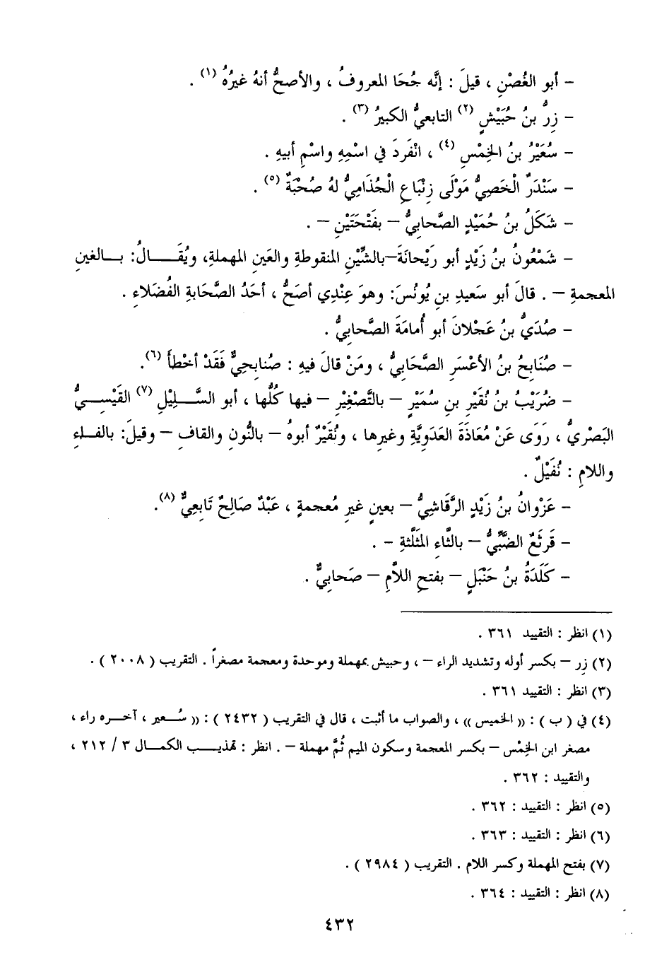 - سُعَيْرُ بنُ الخِمْسِ (¬4)، انْفَردَ في اسْمِهِ واسْمِ أبيهِ.
