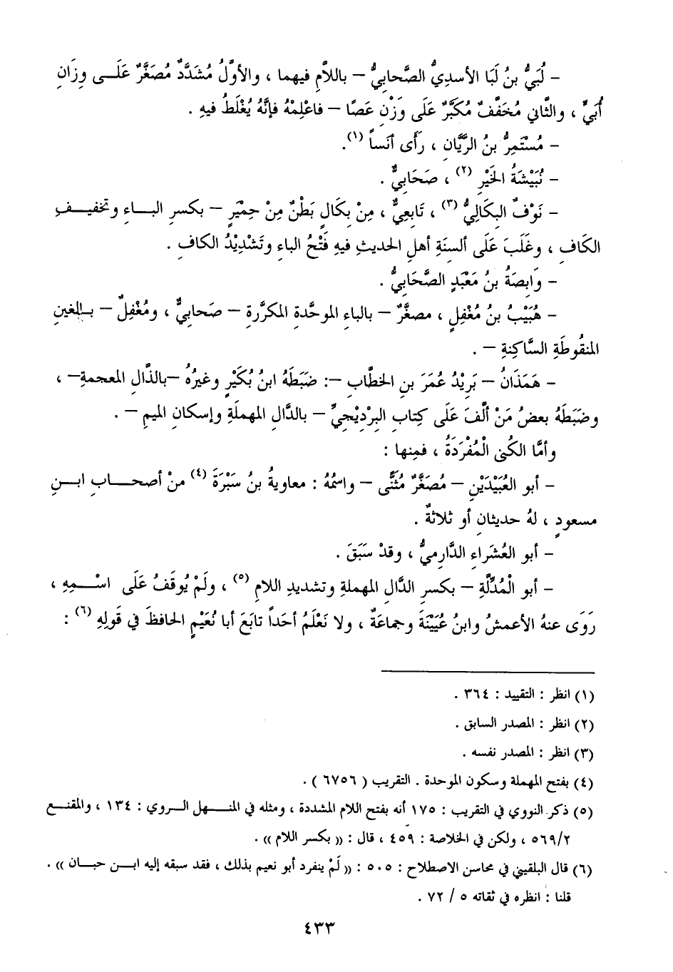 (¬5) ذكر النووي في التقريب: 175 أنه بفتح اللام المشددة، ومثله في المنهل الروي: 134، والمقنع 2/ 569، ولكن في الخلاصة: 459، قال: ((بكسر اللام)).