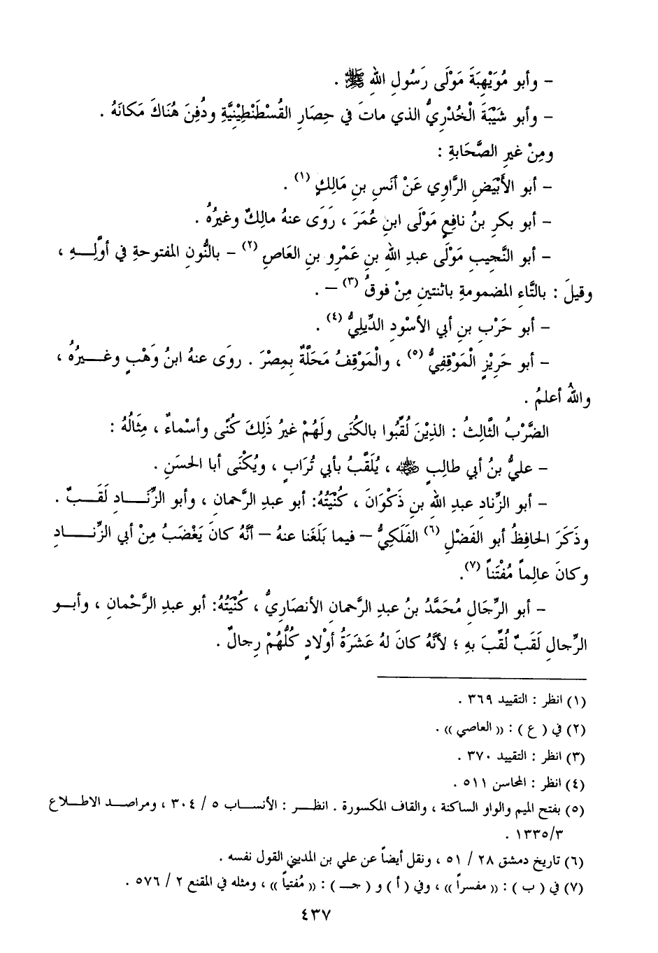 الضَّرْبُ الثَّالِثُ: الذِيْنَ لُقِّبُوا بالكُنَى ولَهُمْ غيرُ ذَلِكَ كُنًى وأسْماءٌ، مِثَالُهُ:
