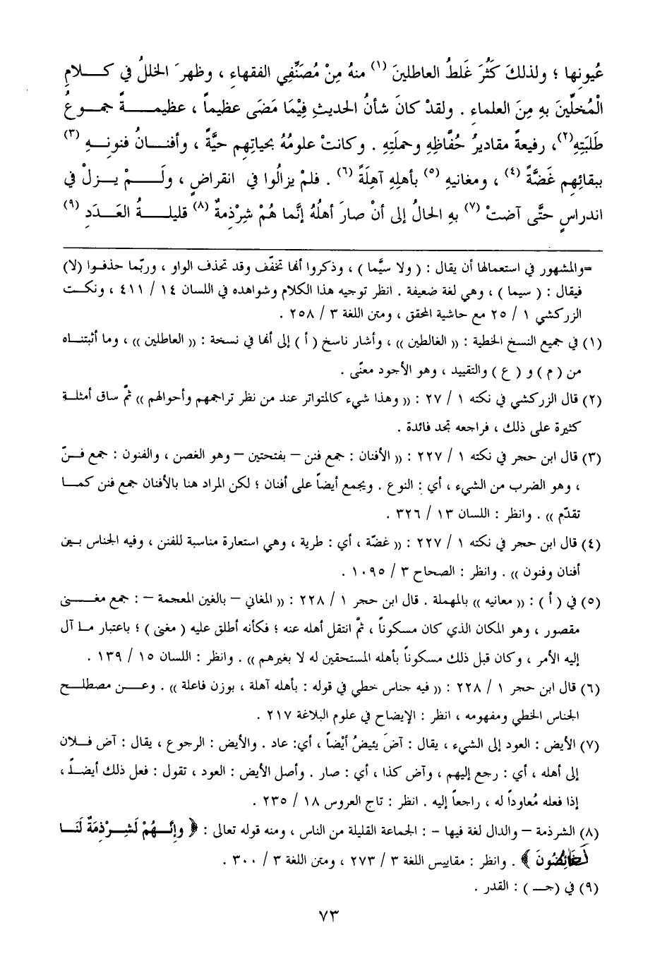 (¬3) قال ابن حجر في نكته 1/ 227: ((الأفنان: جمع فنن - بفتحتين - وهو الغصن، والفنون: جمع فنّ، وهو الضرب من الشيء، أي: النوع. ويجمع أيضاً على أفنان؛ لكن المراد هنا بالأفنان جمع فنن كما تقدّم)). وانظر: اللسان 13/ 326.