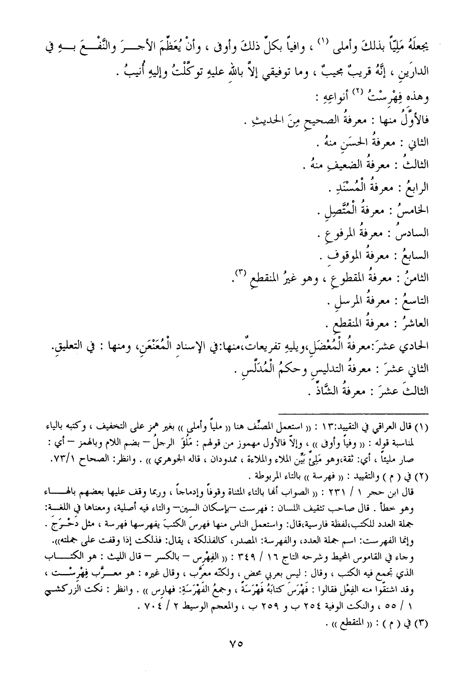وجاء في القاموس المحيط وشرحه التاج 16/ 349: ((الفِهْرِس - بالكسر - قال الليث: هو الكتاب الذي تجمع فيه الكتب، وقال: ليس بعربي محض، ولكنّه معرَّب، وقال غيره: هو معرَّب فِهْرِسْت، وقد اشتقّوا منه الفِعْل فقالوا: فَهْرَسَ كتابَهُ فَهْرَسَةً، وجمعُ الفَهْرَسَةِ: فهارِس)). وانظر: نكت الزركشي 1/ 55، والنكت الوفية 254 ب و 259 ب، والمعجم الوسيط 2/ 704.