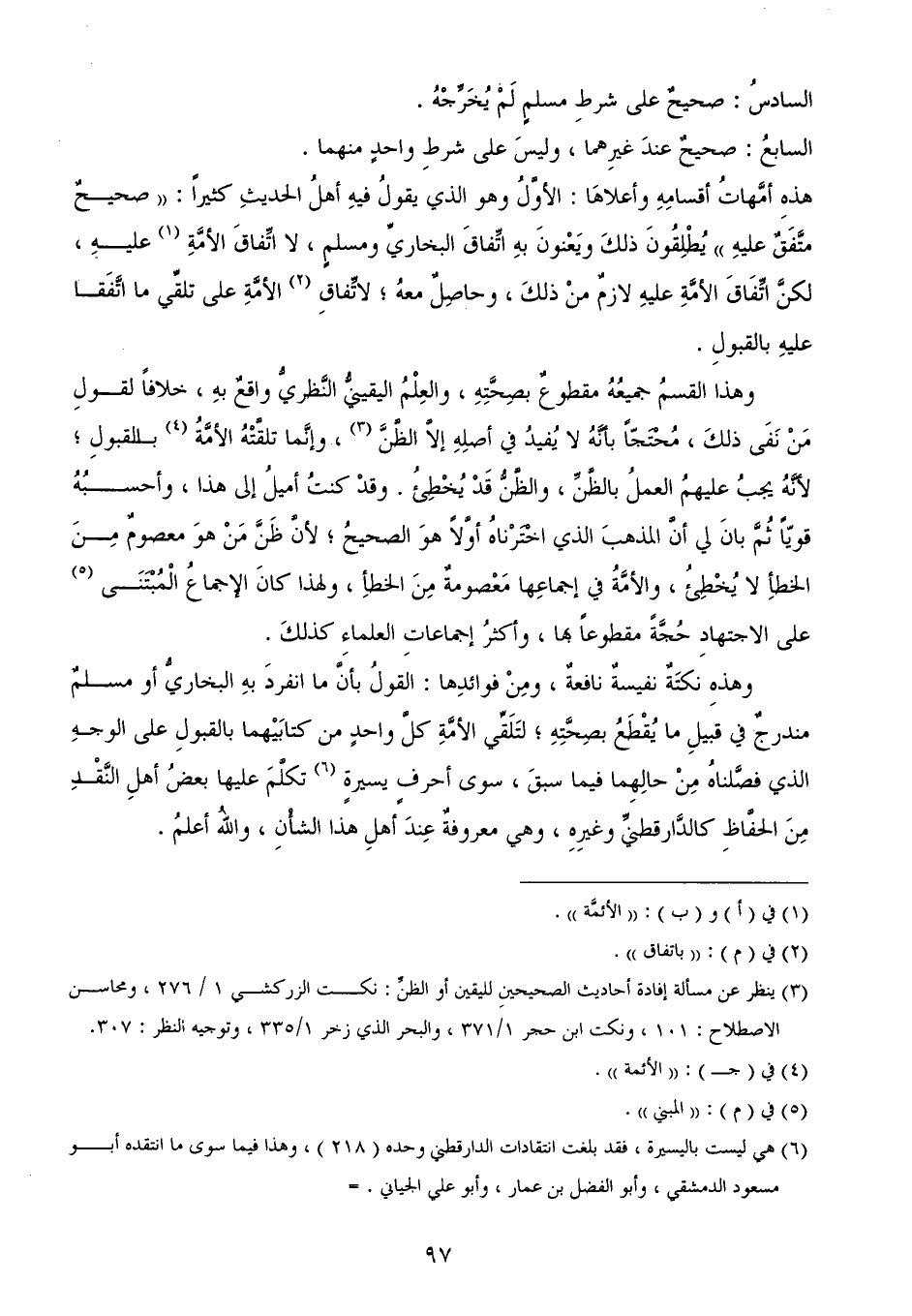(¬3) ينظر عن مسألة إفادة أحاديث الصحيحينِ لليقين أو الظنِّ: نكت الزركشي 1/ 276، ومحاسن الاصطلاح: 101، ونكت ابن حجر 1/ 371، والبحر الذي زخر 1/ 335، وتوجيه النظر: 307.