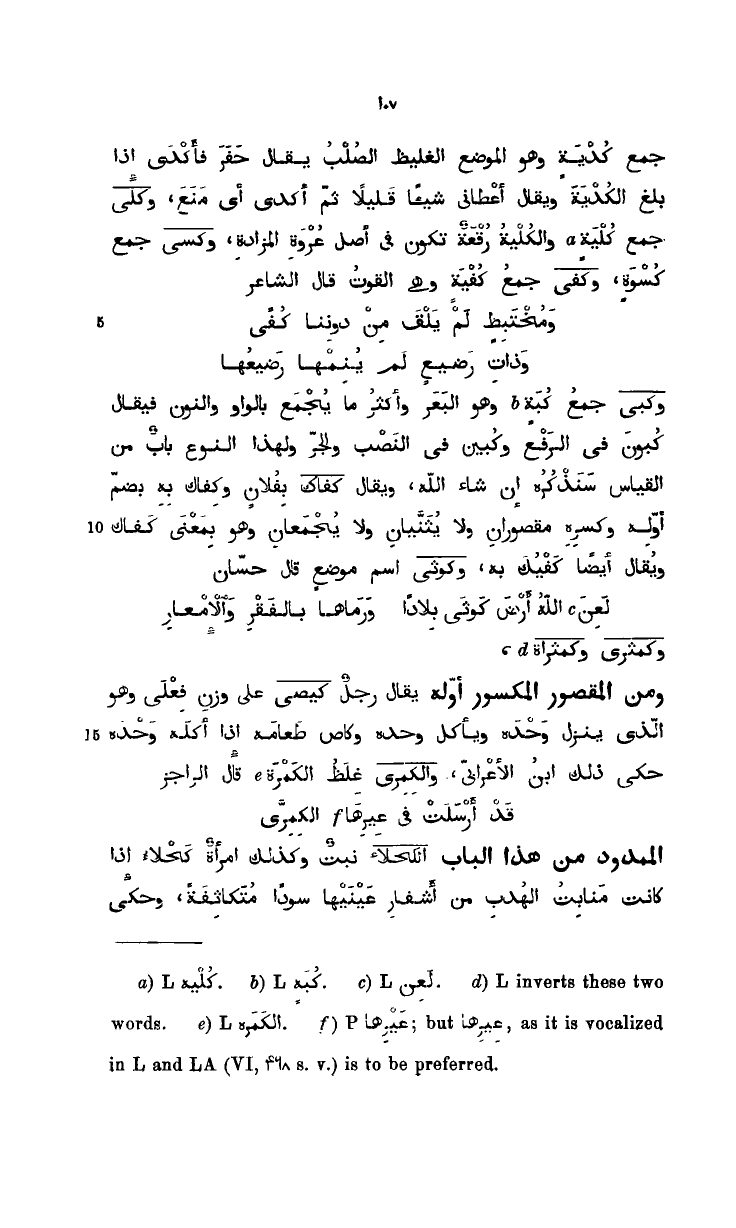 جمع كدية وهو الموضع الغليظ الصلب يقال حفر فأكدى إذا بلغ الكذية ويقال أعطاني شيئاً قليلاً ثم أكدى أي منع. وكلي. جمع كلية والكلية رقعة تكون في أصل عروة المزادة. وكسي. جمع كسوة. وكفى، جمع كفية وهي لقوت. . قال الشاعر: