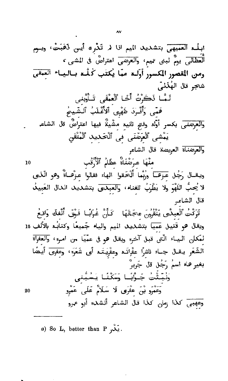 إبله. العميهي. بتشديد الميم إذا لم تدر أين ذهبت ويوم. العظالى. يوم لبني تميم. والعرضى. اعتراض في المشي.