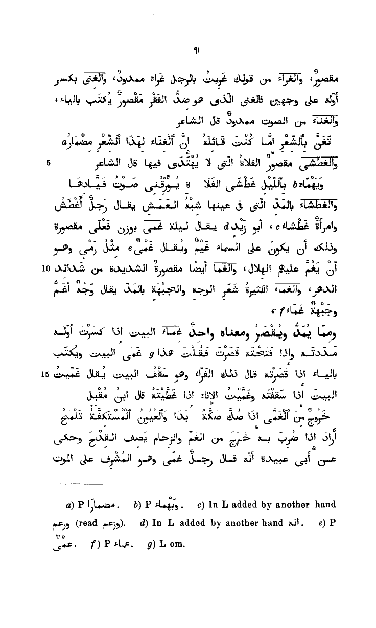 ومما يمدّ ويقصر ومعناه واحد. غماء. البيت إذا كسرت أوله مددته وإذا فتحته قصرت فقلت هذا غمي البيت يكتب بالياء إذا قصرته قال ذلك الفرّاء وهو سقف البيت يقال غمّيت البيت إذا سقفته وغمّيت الإناء إذا غطّيته. . قال ابن مقبل: