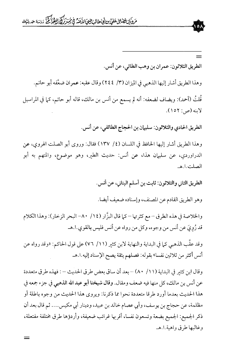وقد عقَّب الذهبي كما في البداية والنهاية لابن كثير (١١/ ٧٦) على قول الحاكم: «وقد رواه عن أنس أكثر من ثلاثين نفسا» بقوله: فصلهم بثقة يصح الإسناد إليه. ا. هـ