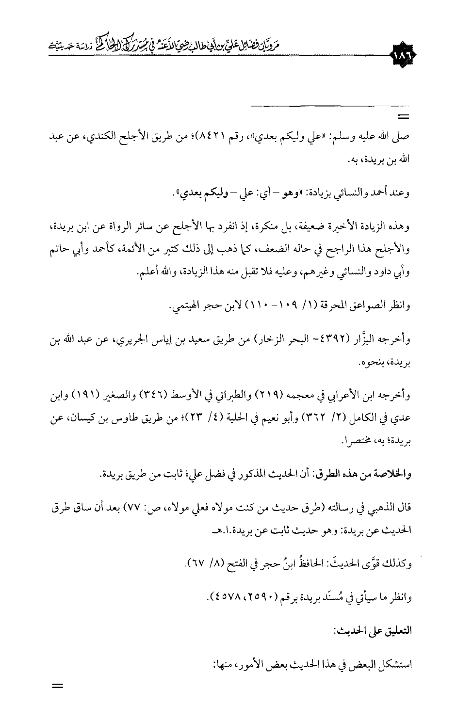 قال الذهبي في رسالته (طرق حديث من كنت مولاه فعلي مولاه، ص: ٧٧) بعد أن ساق طرق الحديث عن بريدة: وهو حديث ثابت عن بريدة. ا. هـ