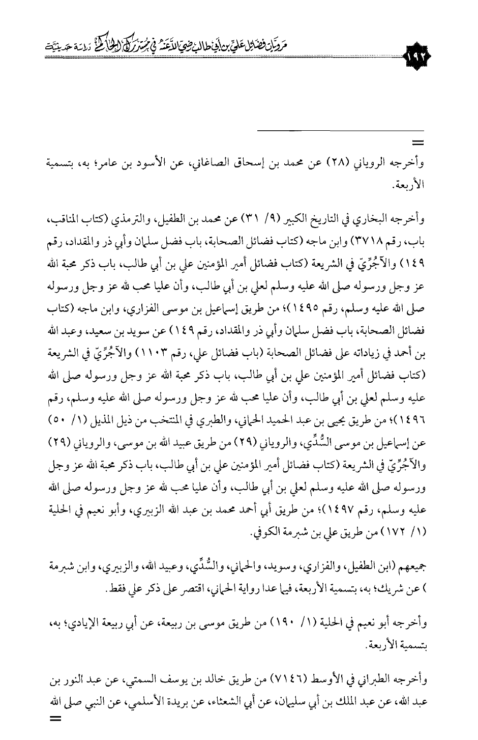 وأخرجه البخاري في التاريخ الكبير (٩/ ٣١) عن محمد بن الطفيل، والترمذي (كتاب المناقب، باب، رقم ٣٧١٨) وابن ماجه (كتاب فضائل الصحابة، باب فضل سلمان وأبي ذر والمقداد، رقم ١٤٩) والآجُرِّيّ في الشريعة (كتاب فضائل أمير المؤمني علي بن أبي طالب، باب ذكر محبة الله عز وجل ورسوله صلى الله عليه وسلم لعلي بن أبي طالب، وأن عليا محب لله عز وجل ورسوله صلى الله عليه وسلم، رقم ١٤٩٥)؛ من طريق إسماعيل بن موسى الفزاري، وابن ماجه (كتاب فضائل الصحابة، باب فضل سلمان وأبي ذر والمقداد، رقم ١٤٩) عن سويد بن سعيد، وعبدالله بن أحمد في زياداته على فضائل الصحابة (باب فضائل علي، رقم ١١٠٣) والآجُرِّيّ في الشريعة (كتاب فضائل أمير المؤمني علي بن أبي طالب، باب ذكر محبة الله عز وجل ورسوله صلى الله عليه وسلم لعلي بن أبي طالب، وأن عليا محب لله عز وجل ورسوله صلى الله عليه وسلم، رقم ١٤٩٦)؛ من طريق يحيى بن عبدالحميد الحماني، والطبري في المنتخب من ذيل المذيل (١/ ٥٠) عن إسماعيل بن موسى السُّدِّي، والروياني (٢٩) من طريق عبيدالله بن موسى، والروياني (٢٩) والآجُرِّيّ في الشريعة (كتاب فضائل أمير المؤمنين علي بن أبي طالب، باب ذكر محبة الله عز وجل ورسوله صلى الله عليه وسلم لعلي بن أبي طالب، وأن عليا محب لله عز وجل ورسوله صلى الله عليه وسلم، رقم ١٤٩٧)؛ من طريق أبي أحمد محمد بن عبدالله الزبيري، وأبو نعيم في الحلية (١/ ١٧٢) من طريق علي بن شبرمة الكوفي.