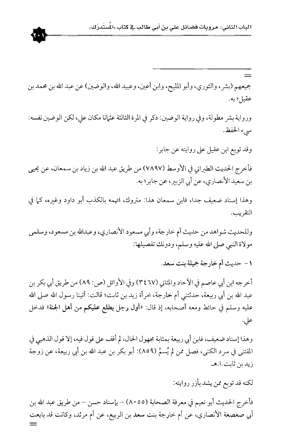 ١ - حديث أم خارجة جميلة بنت سعد.