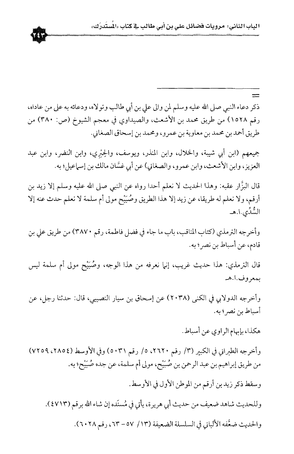قال البزَّار عقبه: وهذا الحديث لا نعلم أحدا رواه عن النبي صلى الله عليه وسلم إلا زيد بن أرقم، ولا نعلم له طريقا، عن زيد إلا هذا الطريق وصُبَيْح مولى أم سلمة لا نعلم حدث عنه إلا السُّدِّي. ا. هـ