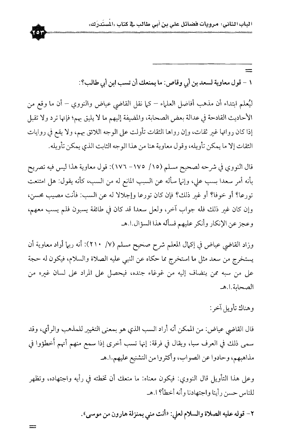٢ - قوله عليه الصلاة والسلام لعلي: «أنت مني بمنزلة هارون من موسى». =