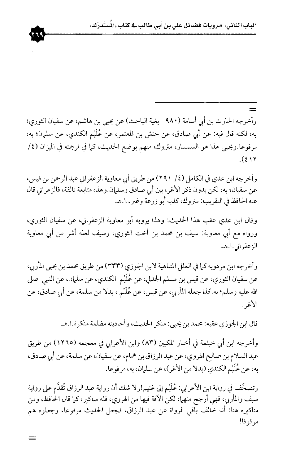 وأخرجه ابن عدي في الكامل (٤/ ٢٩١) من طريق أبي معاوية الزعفراني عبدالرحمن بن قيس، عن سفيان؛ به، لكن بدون ذكر الأغر، بين أبي صادق وسلمان.