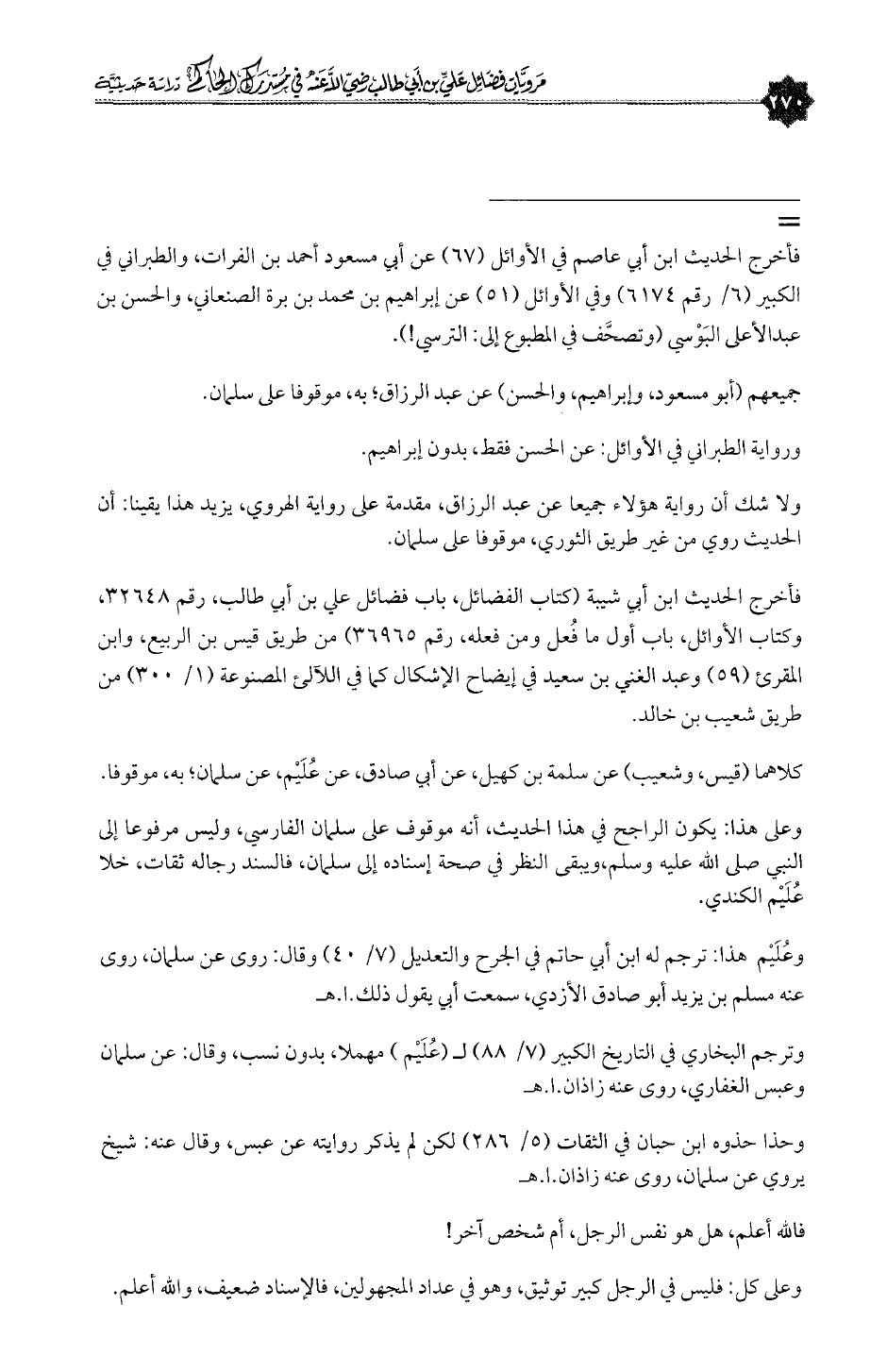 وعُلَيْم هذا: ترجم له ابن أبي حاتم في الجرح والتعديل (٧/ ٤٠) وقال: روى عن سلمان، روى عنه مسلم بن يزيد أبو صادق الأزدي، سمعت أبى يقول ذلك. ا. هـ