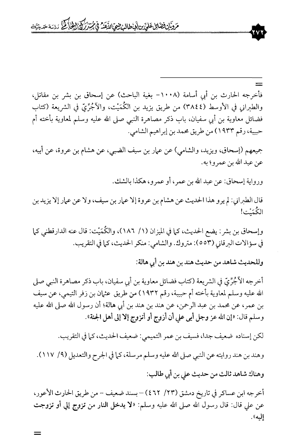 = فأخرجه الحارث بن أبي أسامة (١٠٠٨ - بغية الباحث) عن إسحاق بن بشر بن مقاتل، والطبراني في الأوسط (٣٨٤٤) من طريق يزيد بن الكُمَيْت، والآجُرِّيّ في الشريعة (كتاب فضائل معاوية بن أبي سفيان، باب ذكر مصاهرة النبي صلى الله عليه وسلم لمعاوية بأخته أم حبيبة، رقم ١٩٣٣) من طريق محمد بن إبراهيم الشامي.