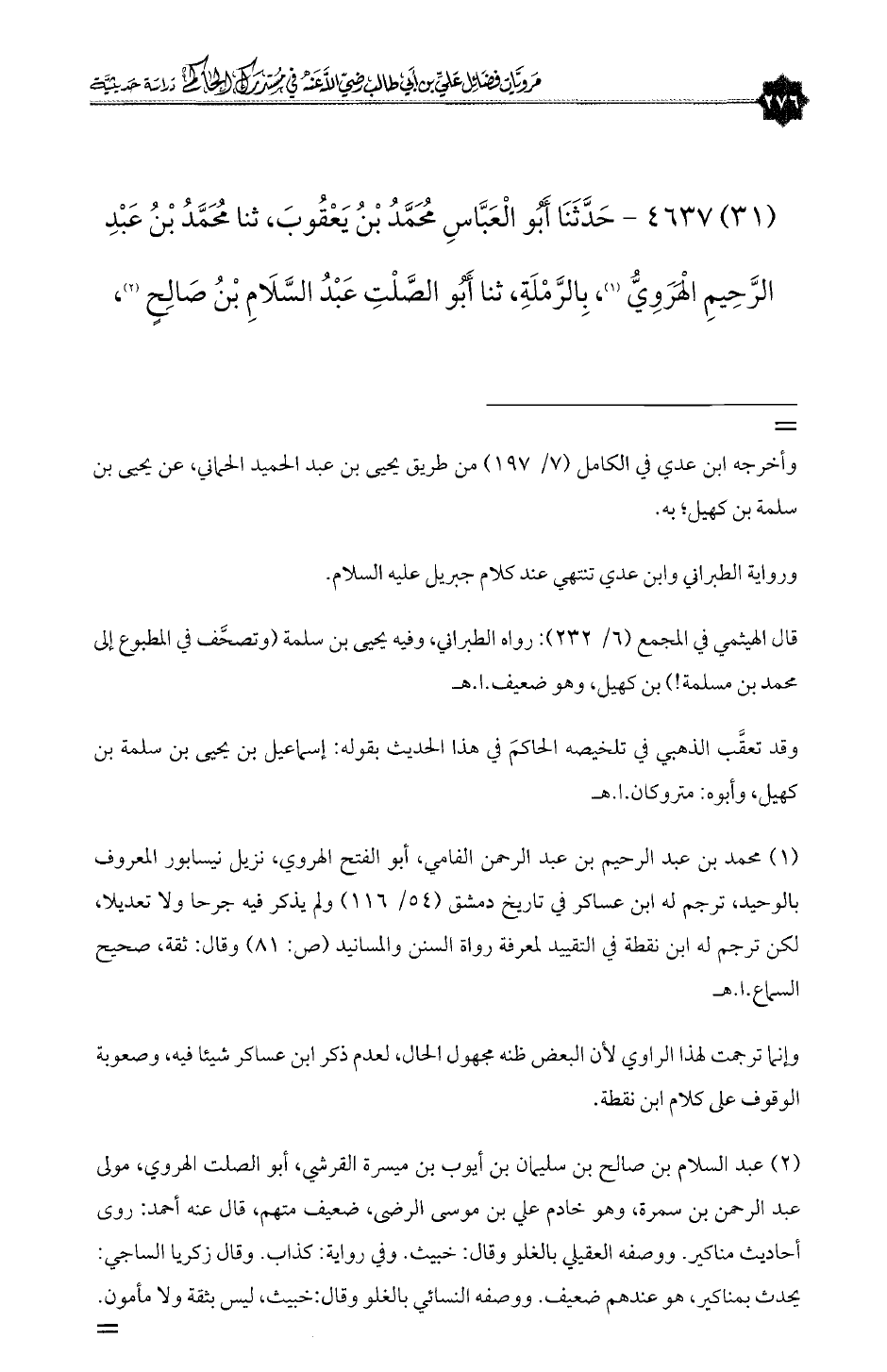(٣١) ٤٦٣٧ - حَدَّثَنَا أَبُو الْعَبَّاسِ مُحَمَّدُ بْنُ يَعْقُوبَ، ثنا مُحَمَّدُ بْنُ عَبْدِ الرَّحِيمِ الْهَرَوِيُّ (¬١)، بِالرَّمْلَةِ، ثنا أَبُو الصَّلْتِ عَبْدُ السَّلَامِ بْنُ صَالِحٍ (¬٢)،