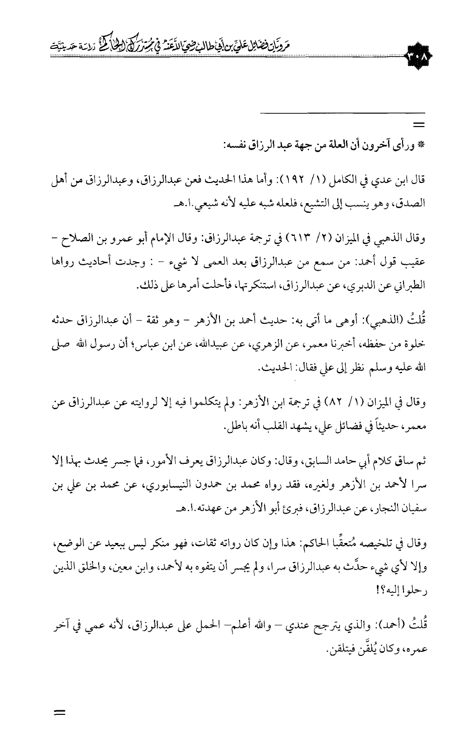 = * ورأى آخرون أن العلة من جهة عبدالرزاق نفسه:
