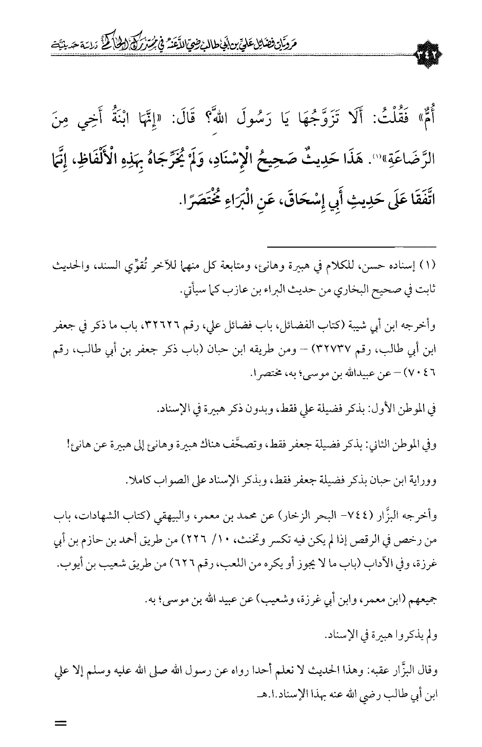 وفي الموطن الثاني: بذكر فضيلة جعفر فقط، وتصحَّف هناك هبيرة وهانئ إلى هبيرة عن هانئ!