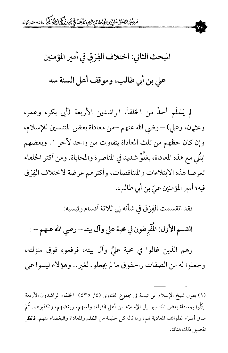 المبحث الثاني: اختلاف الفِرَقِ في أمير المؤمنين علي بن أبي طالب، وموقف أهل السنة منه