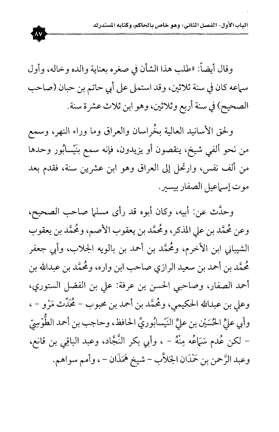 ولحق الأسانيد العالية بخُراسان والعراق وما وراء النهر، وسمع من نحو ألفي شيخ، ينقصون أو يزيدون، فإنه سمع بنَيْسابُور وحدها من ألف نفس، وارتحل إلى العراق وهو ابن عشرين سنة، فقدم بعد موت إسماعيل الصفار بيسير.